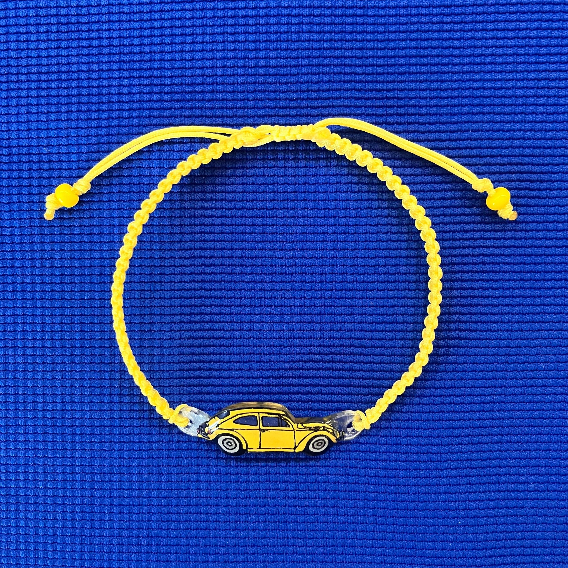 Fil nylon jaune clair, perle 4L jaune clair en plastique et 2 perles de rocaille jaunes
