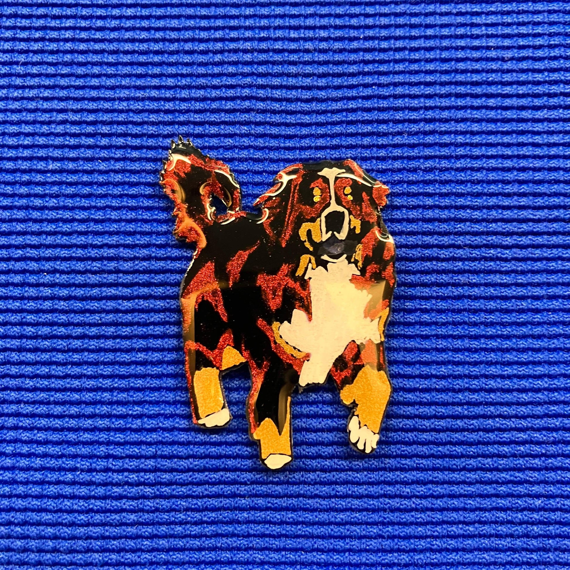 Broche représentant un chien bouvier bernois trottant