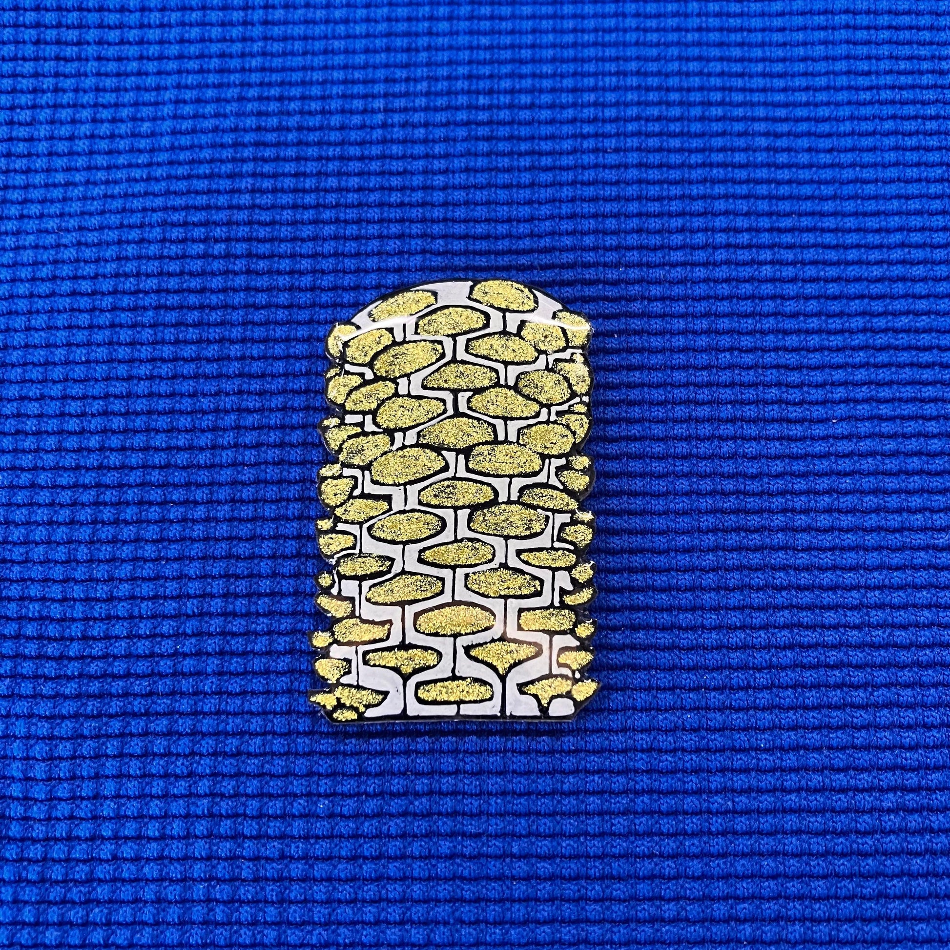 Broche représentant une interprétation d'un des immeubles d'habitation dit "Les Choux" à Créteil, construit par l'architecte Gérard Grandval