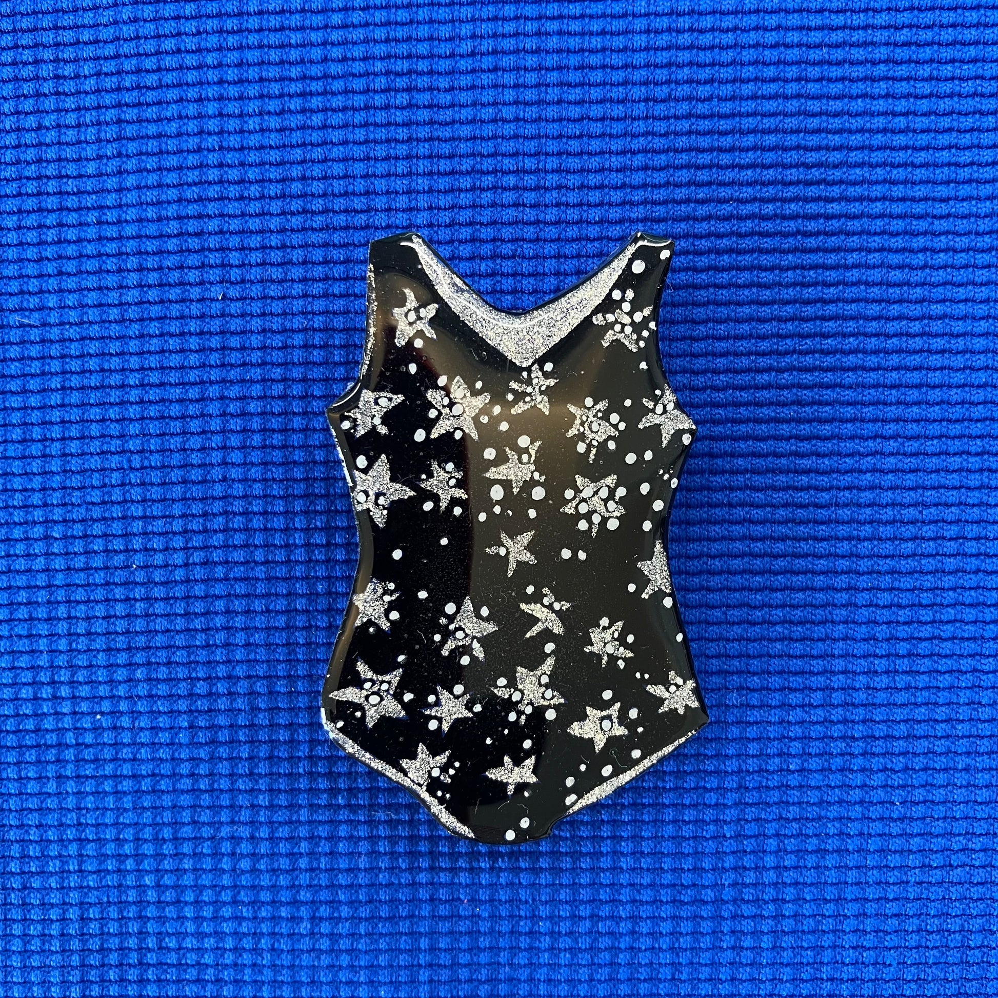 Broche représentant un maillot de bain pour femme une pièce, avec des motifs étoile