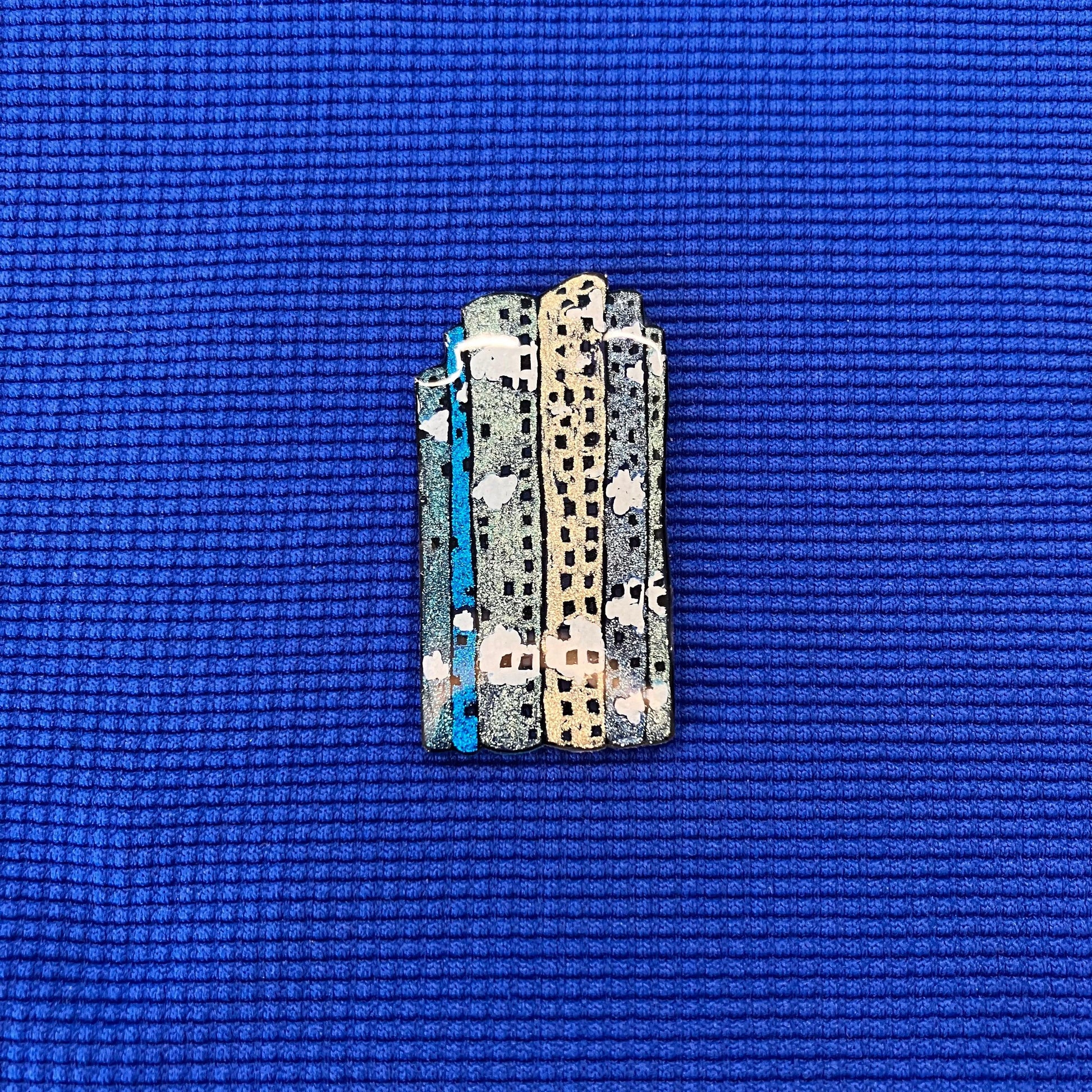 Broche représentant une interprétation d'un des immeubles d'habitation, dit "Tour nuage" à Nanterre, construit par Emile Aillaud